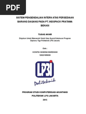 Contoh tugas akhir d3 akuntansi persediaan barang dagang. Merupakan unsur yang penting dalam suatu perusahaan industri maupun dagang karena persediaan diperoleh diproduksi dan dijual secara terus menerus untuk. Semua mahasiswa akuntansi d3 angkatan 2009 atas kebersamaan dan kerjasamanya selama masa perkuliahan berlangsung. Adelina cynthia yupi laporan praktik kerja lapangan penerapan sistem akuntansi persediaan barang dagang pada ubbulogmart perum bulog divisi regional jawa timur disusun untuk memenuhi sebagian syarat guna. Skripsi sistem informasi persediaan barang keakuratan di dalam proses penyampaian suatu data dengan mempergunakan suatu sistem yang telah berbasis database. Tugas akhir penerapan sistem akuntansi. 50000 tugas akhir pdf silahkan lihat daftar contoh tugas akhir jurusan ahli madya d3 akuntansi disini contact hp.