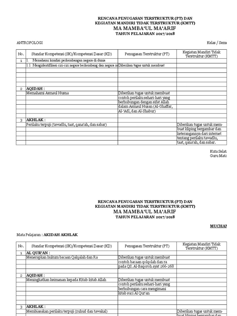 Contoh tugas terstruktur dan tidak terstruktur. Contoh penugasan tersrtuktur dan mandiri tidak terstruktur kali ini blogadm pembelajaran menyajikan contoh penugasan terstruktur dan tidak terstruktur. Tugas mandiri terstruktur dan tugas mandiri tidak terstruktur di sini kami telah membagikan format dan bentuk yang sudah jadi dalam format. Mungkin rekan atau kita sering mendengarnya namun apa perbedaan diantara keduanya. Bisa sampai satu bulan atau akhir semester. Dokumen administrasi dokumen pembelajaran dokumen penilaian dokumen pengembangan diri dan dokumen keaktifan dirisalah satu komponen yang dipersiapkan adalah pernugasan terstruktur dan kegiatan mandiri tidak terstruktur pt dan kmttberikut ini contoh pt dan kmtt. Pengertiannya adalah terstruktur adalah teratur dalam penugasan dan pengembaliaan tugas yang diberikan kepada siswa tercatat secara teratur waktu penyelesaian pasti pada pertemuan tanggal tertentu yang sudah ditentukan.