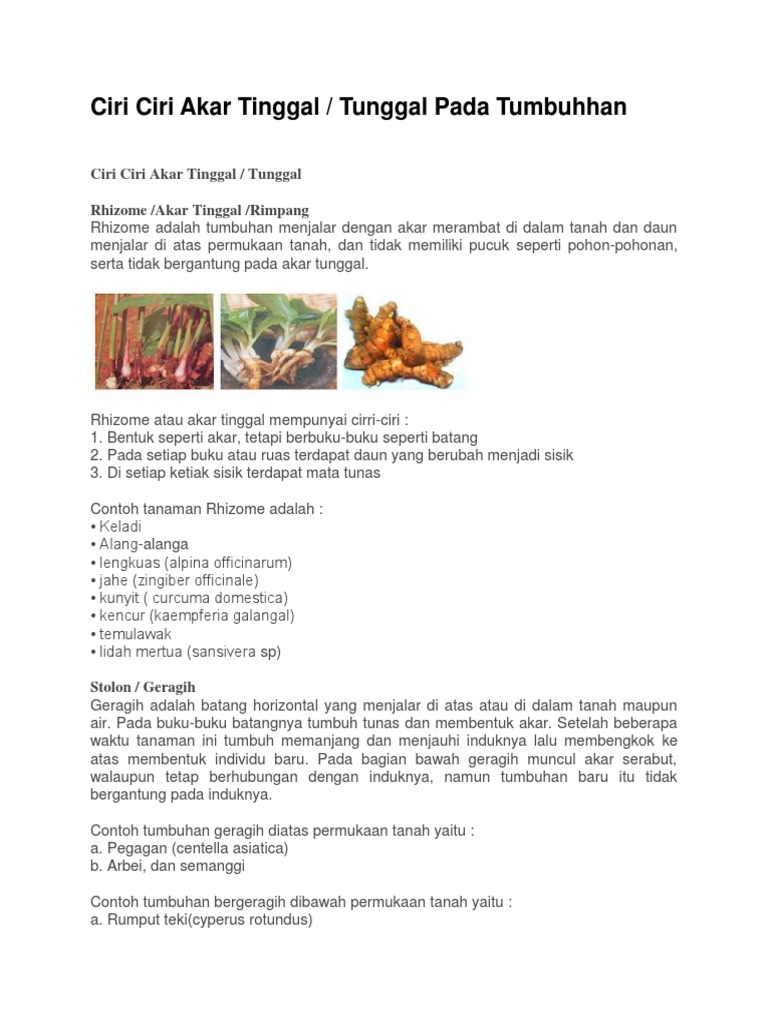 Bagian bagian tersebut merupakan organ vegetatif. Contoh tumbuhan yang memiliki akar tinggal antara lain kunyit jahe lengkuas dan kencur. Baca juga artikel yang mungkin berhubungan. Contoh tumbuhan berakar tunggang tumbuhan berakar tunggang merupakan salah satu jenis pengelompokan tumbuhan berdasarkan bentuk akar. Tumbuhan merupakan salah satu ciri kehidupan tanaman untuk melestarikan lingkungannya karena dapat membetuk karakteristik yang dari berbagai jenis tanaman. Akar tunggang akar tunggang adalah akar tanaman yang berupa akar besar dan bagian dari kelanjutan batangpada bagian akar utama tersebut terdapat banyak cabang akar yang berukuran lebih kecil dari akar utamatanaman yang memiliki akar tunggang biasanya terdapat pada tanaman yang berkeping dua dikotil contohnya adalah mangga jeruk melinjo rambutanjambu dan masih banyak contoh lainnya.