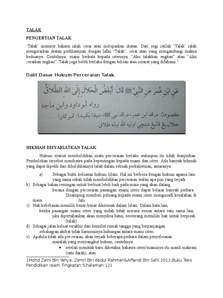 Pengertian dan macam macam talak dalam islam thalaq atau talak adalah pemutusan tali pernikahan dari seorang suami terhadap istri dengan alasan yang diterima secara syari. Talak merupakan perbuatan halal namun dibenci oleh allah swt. Ada pula talak berupa kata kiasan yang butuh akan niat. Kadang karena ketidak tahuan akan talak yang menyebabkan dengan sendirinya talak itu jatuh. Oleh karena itu meski thalaq ini dibolehkan namun sebisa mungkin untuk dihindari karena dalam pernikahan akan selalu ada yang namanya masalah. Berdasarkan cara pelafalannya shighat talak dibagi menjadi dua yaitu.