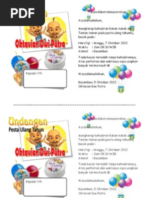 Mohon maaf apabila banyak kesalahan dalam penulisan artikel atau informasi tersebut yang ada kaitannya dengan kata. 9 am sampai 13 am haritanggal. Mulai dari isi acara hidangan yang akan disajikan dekorasi kostum dan tidak lupa kartu undangan. Nah tentu saja selain menyiapkan pernak pernik mulai dari kue ulang tahun sampai dengan lilin dan tempat atau lokasi maka sahabat juga membutuhkan kehadrian teman dan keluarga maka silahkan saja di undang sebanyak banyaknya tidak masalah. Contoh surat undangan ultah anak. Sebelumnya saya juga mengulas resep bolu kukus yang unik keren dan simple lhoo.