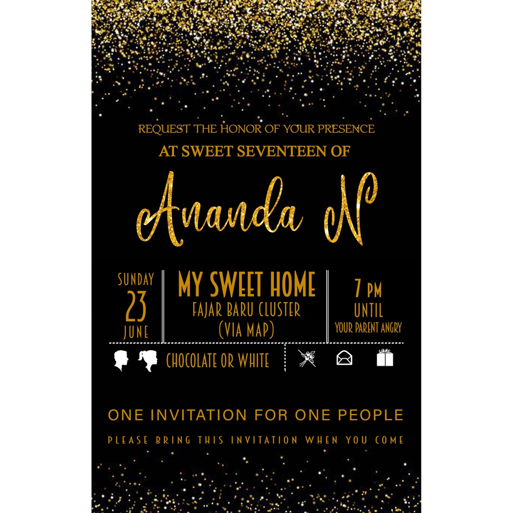 Sekian penjelasan yang bisa admin berikan mengenai contoh undangan ulang tahun sweet seventeen. Contoh undangan ulang tahun sweet seventeen. Biasanya orang yang merayakan sweet seventeen ini saat umurnya genap 17 tahun bahkan ada yang merayakan ulang tahunnya hanya pada umur 17 tahun saja namun saat merayakannya langsung besar besaran. Undangan ulang tahun sweet seventeenukuran. Mohon maaf apabila banyak kesalahan dalam penulisan artikel atau informasi tersebut yang ada. 12 cm x 16 cm dilipat.