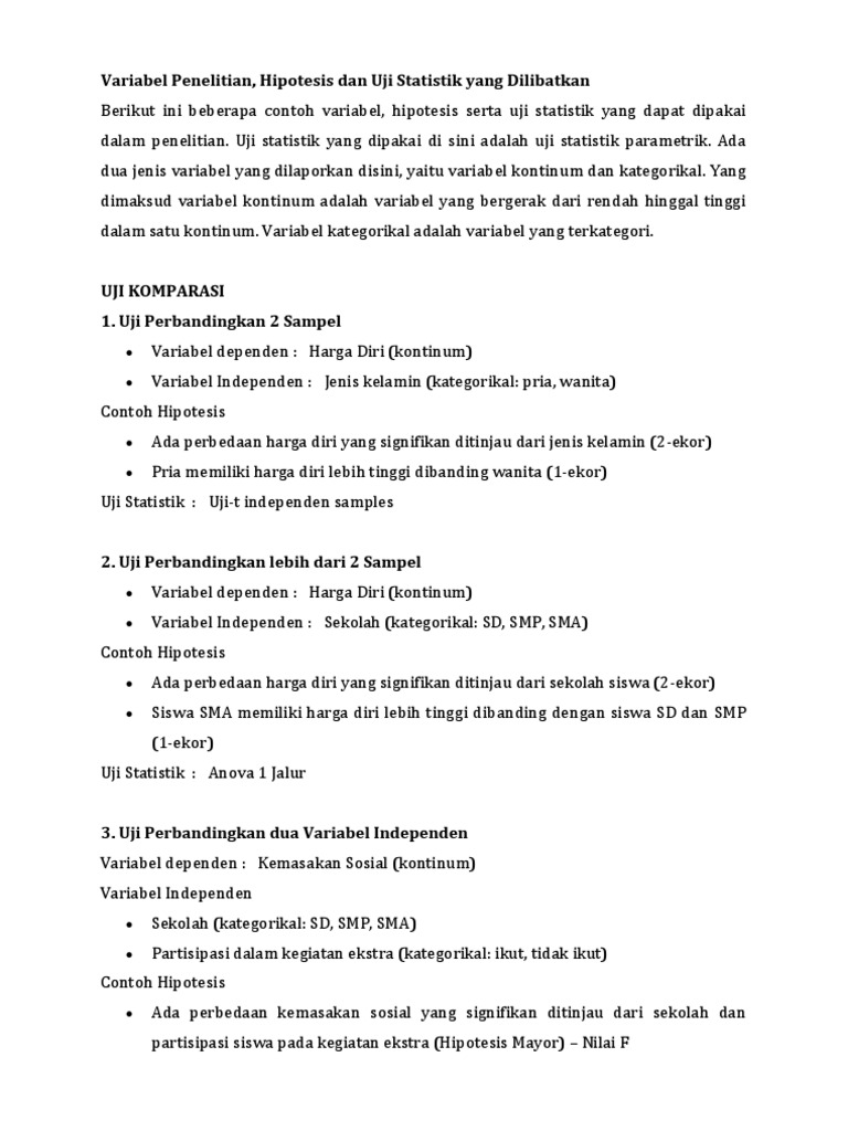 Contoh variabel independen dan dependen. Penelitian sosial selalu melibatkan hubungan antara dua atau lebih variabel. Pengertian variabel independen variabel bebas variabel independen variabel bebas adalah variabel yang mempengaruhi atau sebab perubahan timbulnya variabel terikat dependen. Variabel independen independent variable adalah tipe variabel yang menjelaskan atau mempengaruhi variabel yang lainvariabel dependen dependent variable adalah tipe variabel yang dijelaskan atau dipengaruhi oleh variabel independen. Namun pada variabel dependen dan independen yang kami contohkan di atas hanya terdiri masing masing satu variabel. Pada umumnya variabel penelitian dibagi menjadi 2 yaitu variabel dependen terikat dan independen bebasistilah variabel independen dan variabel dependen berasal dari logika matematika di mana x dinyatakan sebagai yang mempengaruhi atau sebab dan y dinyatakan sebagai yang dipengaruhi atau akibat. Perlu kami tambahkan bahwa pada penelitian lain variabel dependen ataupun variabel independen bisa saja lebih dari satu 1.
