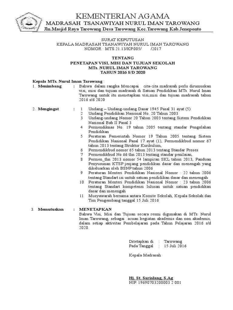 Pemikiran itu merupakan gambaran dari masa depan dari organisasi tersebut. Patokan inilah yang digunakan sebagai landasan untuk melakukan berbagai aktivitas di dalamnya. Yang berisi tentang pemikiran para pendiri organisasi. Untuk memperjelas maka dibuatlah dalam wujud tulisan visi dan misi. Membuat suasana sekolah menjadi lebih nyaman dan menyenangkan 5. Berikut contoh visi misi dan tujuan sekolah yang admin share dari buku kerja kepala sekolah sebagai berikut.